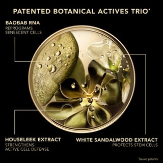 Au cœur de sa formule un trio d’actifs botaniques précieux, - l’extrait de santal blanc, l’extrait de joubarbe, l’ARN de baobab, – qui réactive les protéines messagères de longévité cellulaire*** pour corriger tous les signes de l’âge. Associé au niacinamide, un actif dermatologique, pour une efficacité renforcée et à la papaïne pour affiner le grain de peau et sublimer l’éclat du teint.